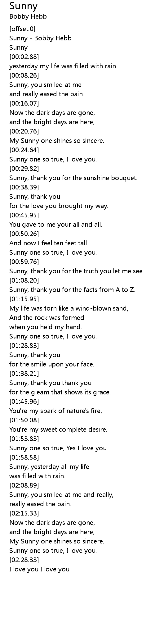 [00:00.14] Sunny - Bobby Hebb