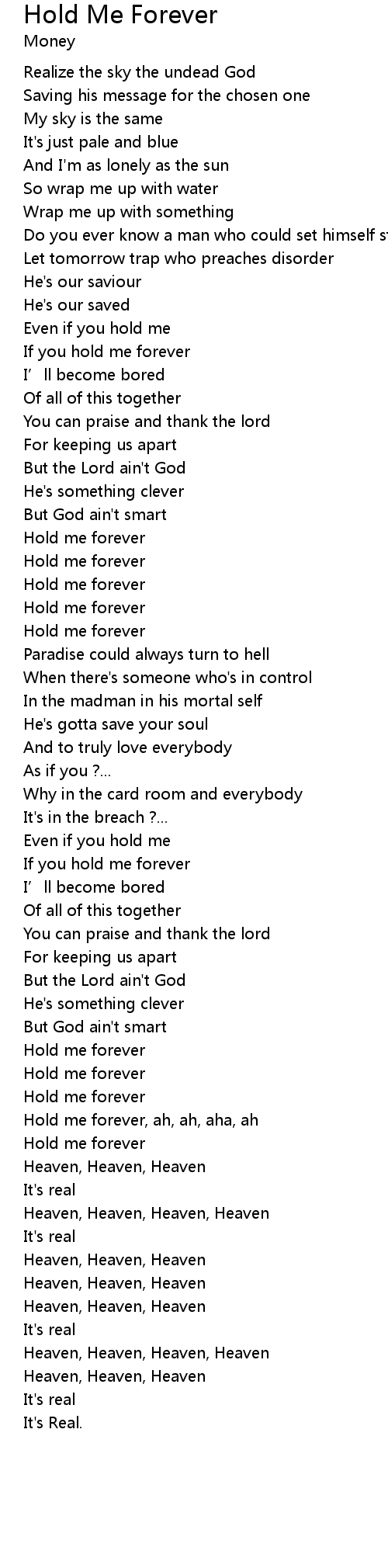 | Hold me forever, ah, ah, aha, ah | |