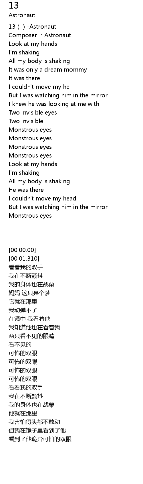 | [03:33.625] | 看到了他诡异可怕的双眼 |