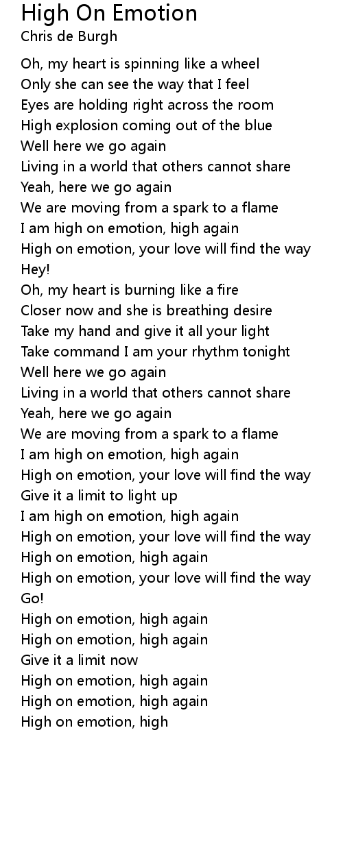 I am high on emotion, high again |