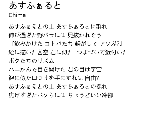| [02:53.94] | あすふぁるとの上 あすふぁるとの揺れ |