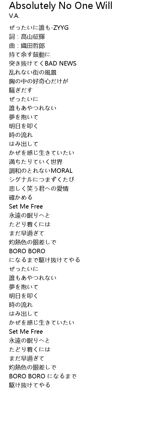 | 歌曲 | Absolutely No One Will |