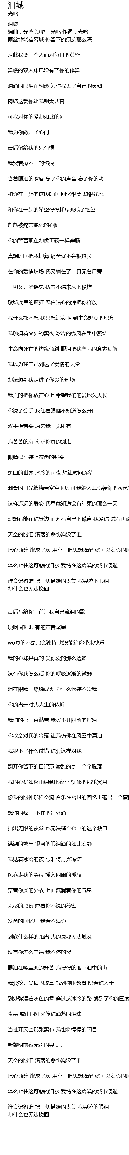 | 编曲:光鸣 演唱:光鸣 作词:光鸣 | |