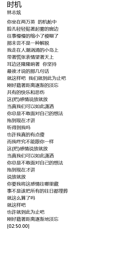 | [00:17.00] | 你坐在两万英 的机舱中 |