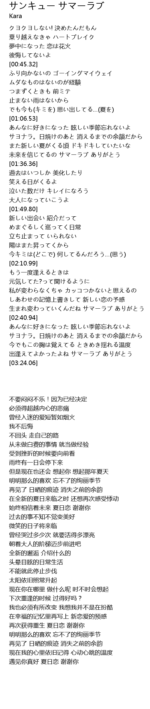 | [03:16.42] | 出逢えてよかったよね サマーラブ ありがとう |