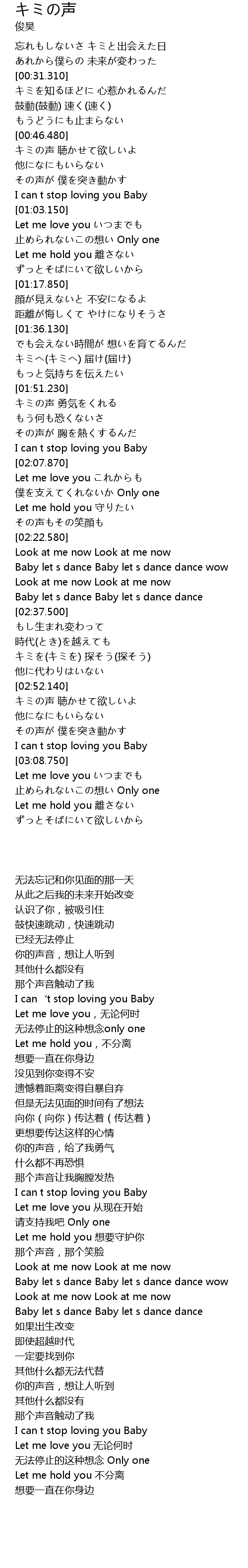 | [03:16.710] | Let me hold you 離さない |