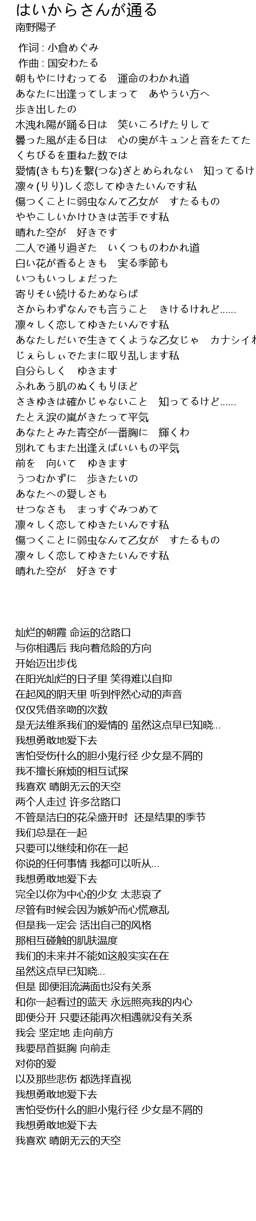 | [01:05.410] | 凛々(りり)しく恋してゆきたいんです私 |