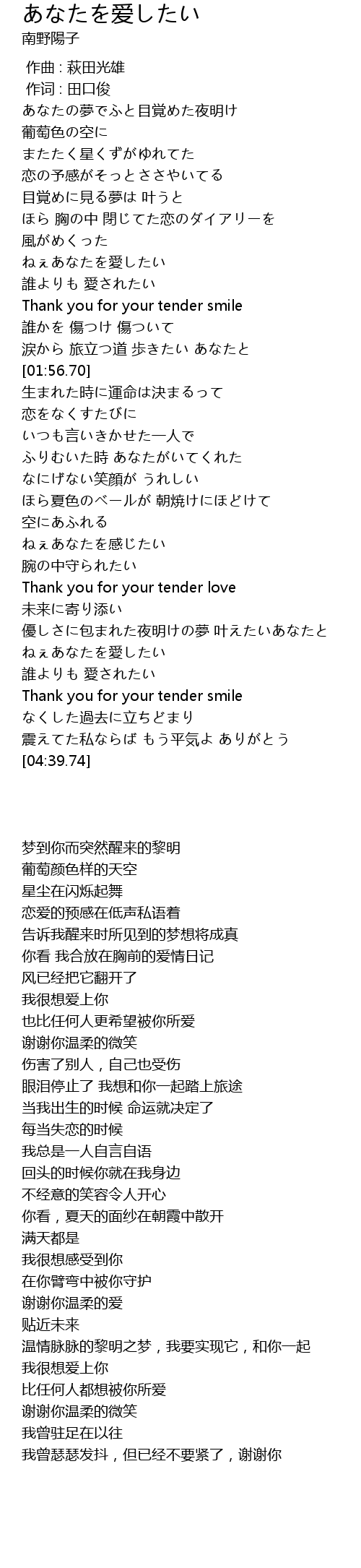| [04:04.12] | Thank you for your tender smile |