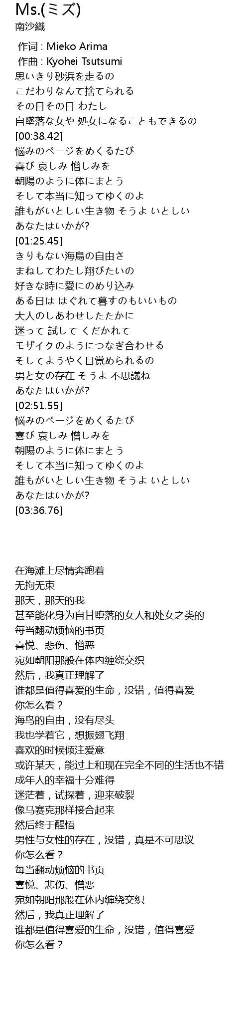 作词 : Mieko Arima |
