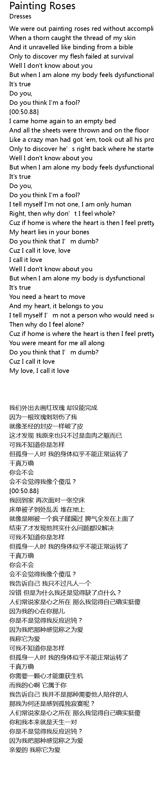 | [00:16.14] | 我们外出去画红玫瑰 却没能完成 |