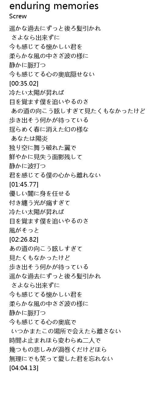 | [03:04.09] | 遥かな過去にずっと後ろ髪引かれ |