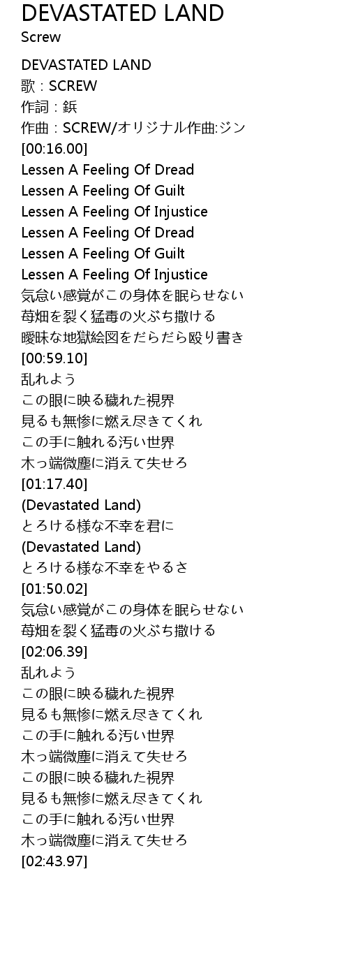 | [01:42.06] | (Devastated Land) |