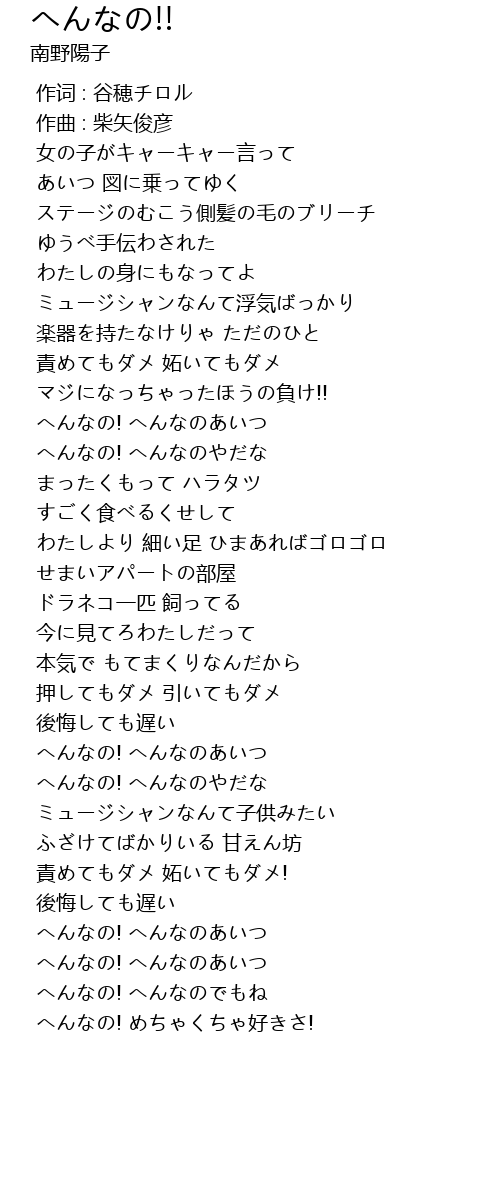 | [03:30.757] | へんなの! へんなのあいつ |