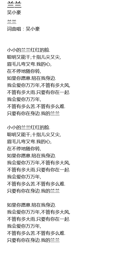 | zhi yao you ni zai shen bian. wo de lan lan | |