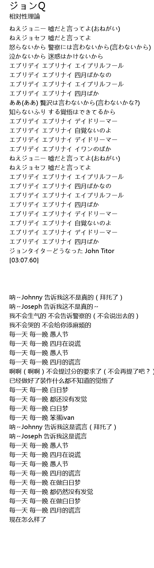 | [00:51.41] | エブリデイ エブリナイ エイプリルフール |