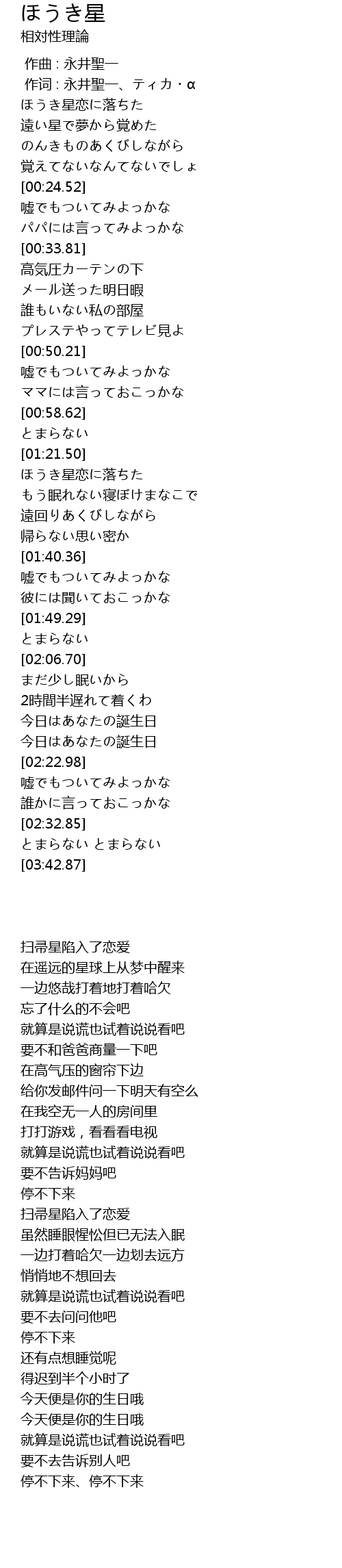 | [01:24.66] | 扫帚星陷入了恋爱 |