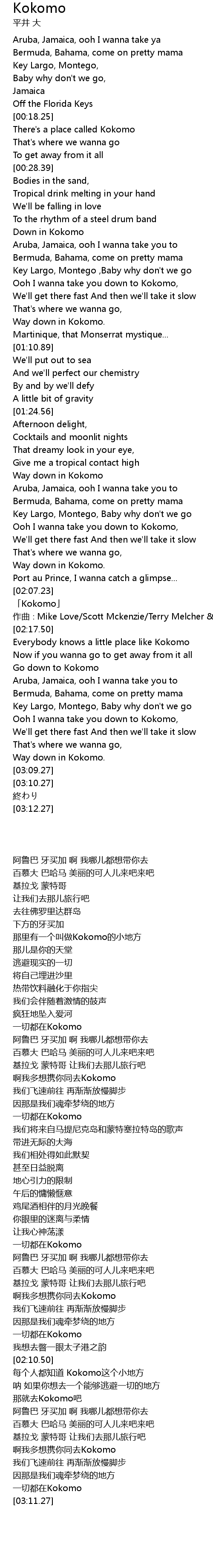 | [02:10.50] | 「Kokomo」 |