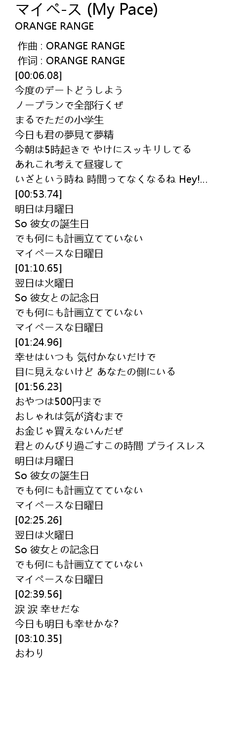 | [00:00.00] | 作曲 : ORANGE RANGE |