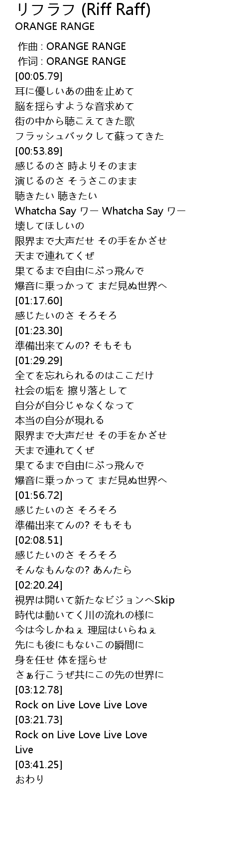 | [00:01.00] | 作词 : ORANGE RANGE |