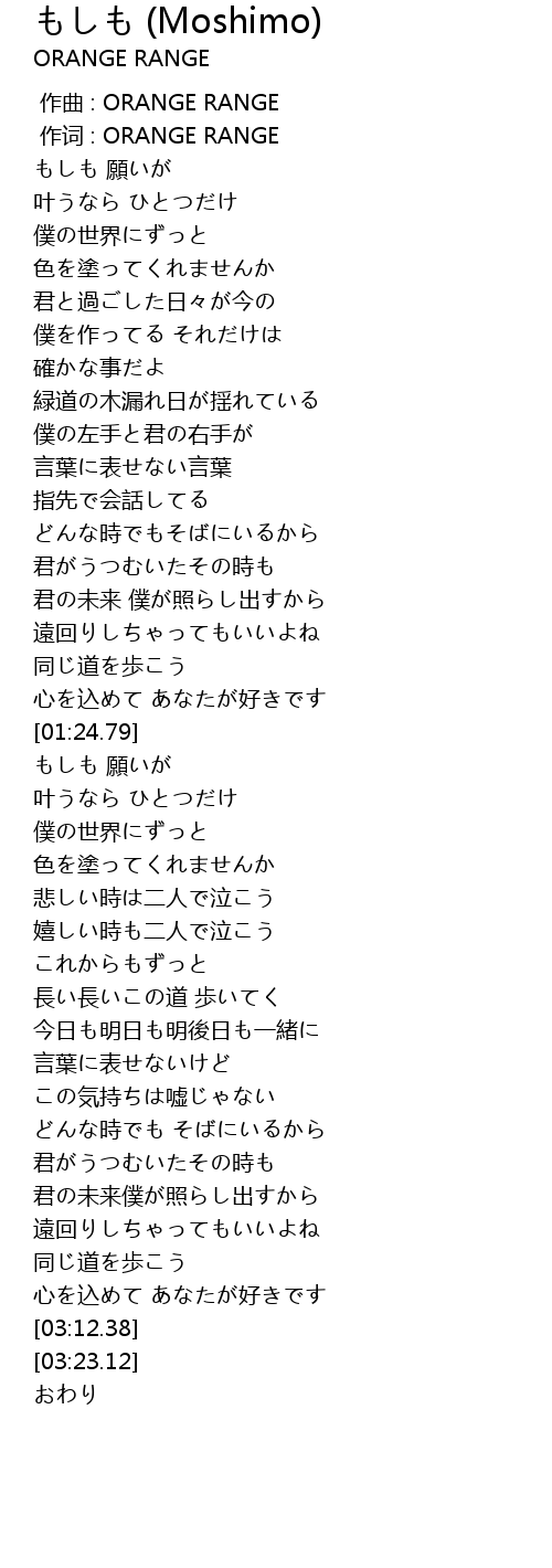 | [00:00.18] | 作词 : ORANGE RANGE |
