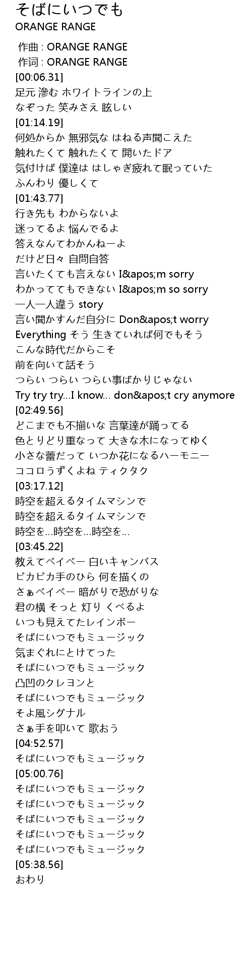 | [00:01.00] | 作词 : ORANGE RANGE |