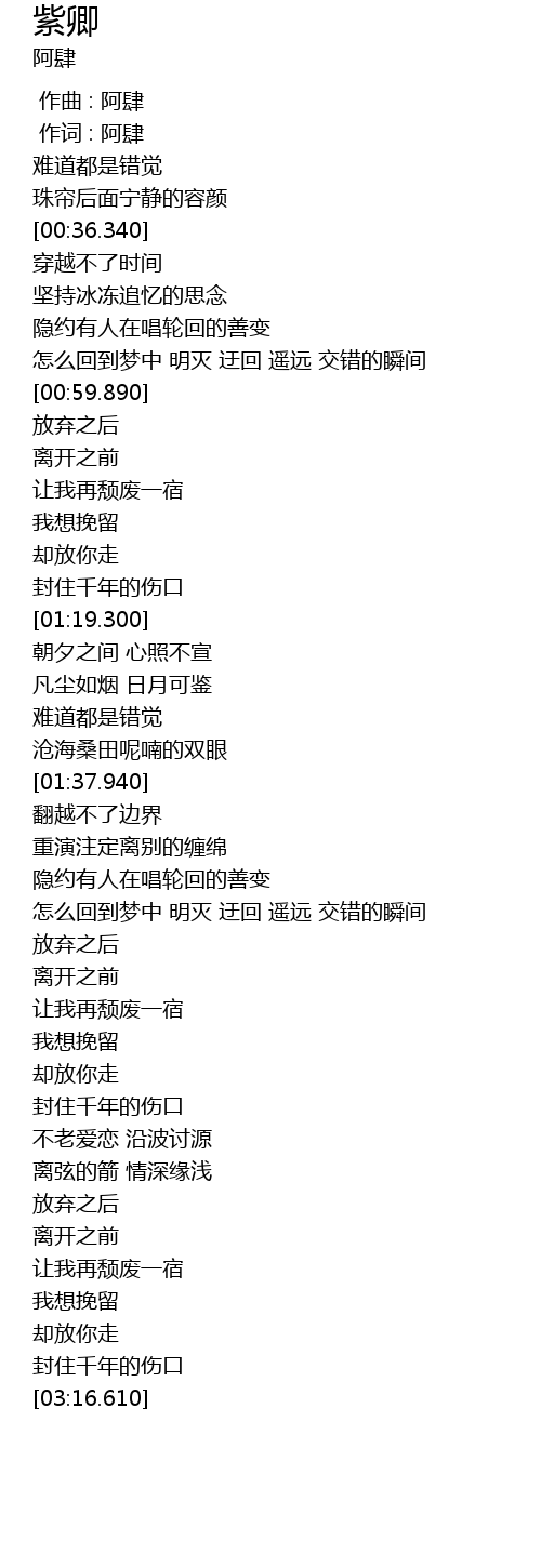 | [00:00.00] | 作曲 : 阿肆 |