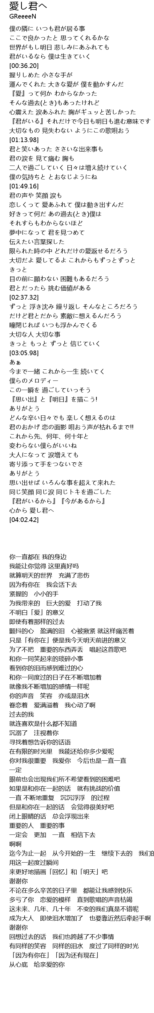 | [03:54.91] | 『君がいるから』『今があるから』 |