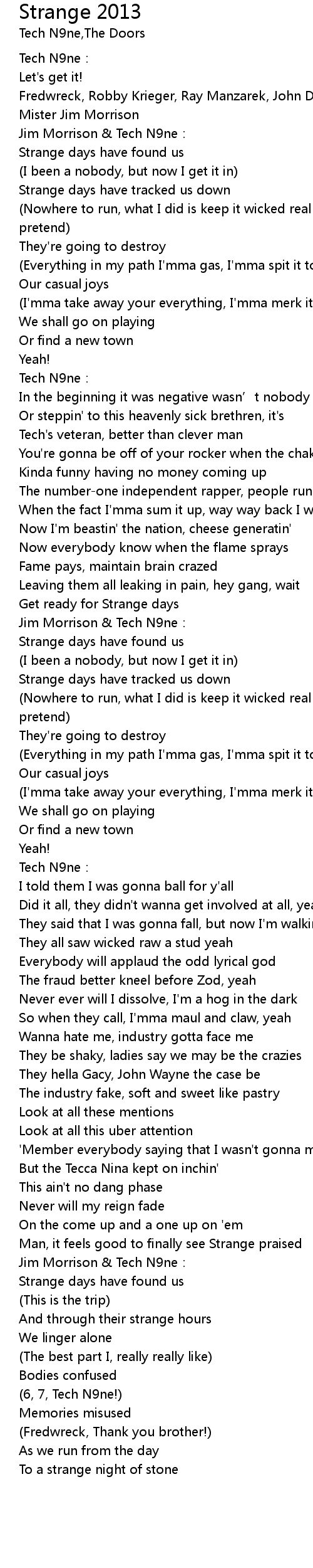 | [00:13.76] | Jim Morrison & Tech N9ne: |
