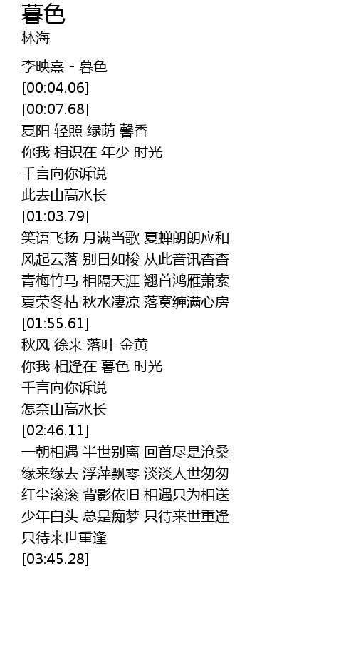| [00:01.12] | 李映熹 - 暮色 |