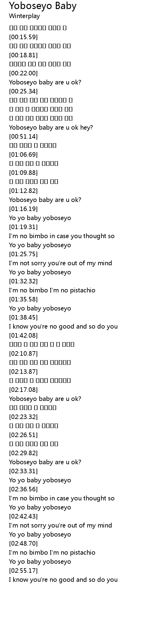 | [02:30.64] | Yoboseyo baby are u ok? |