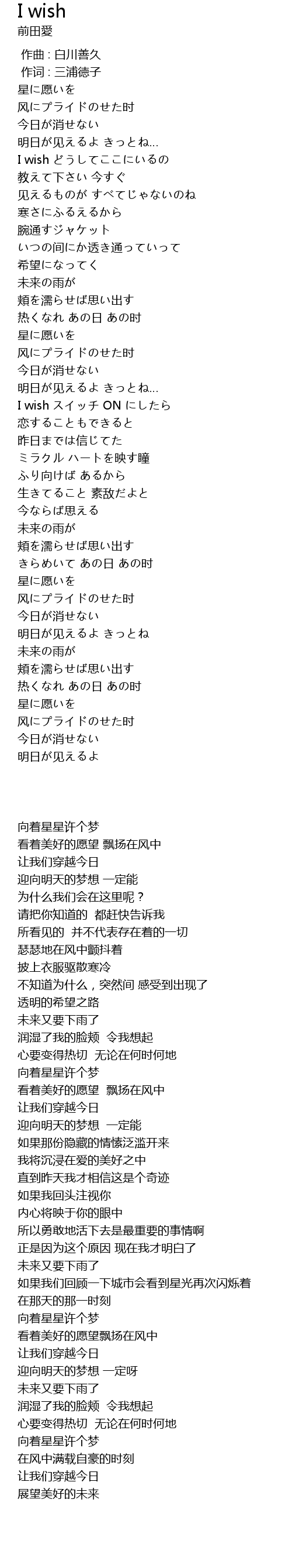 | [01:36.070] | I wish スイッチ ON にしたら |