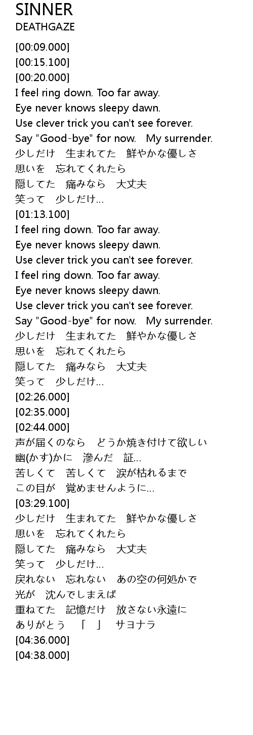 | [00:37.000] | Say "Good-bye" for now. My surrender. |