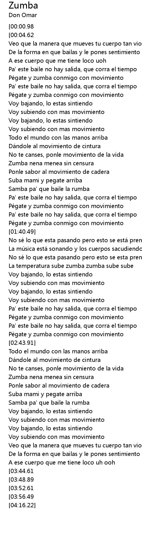 | [01:36.29] | Pégate y zumba conmigo con movimiento |
