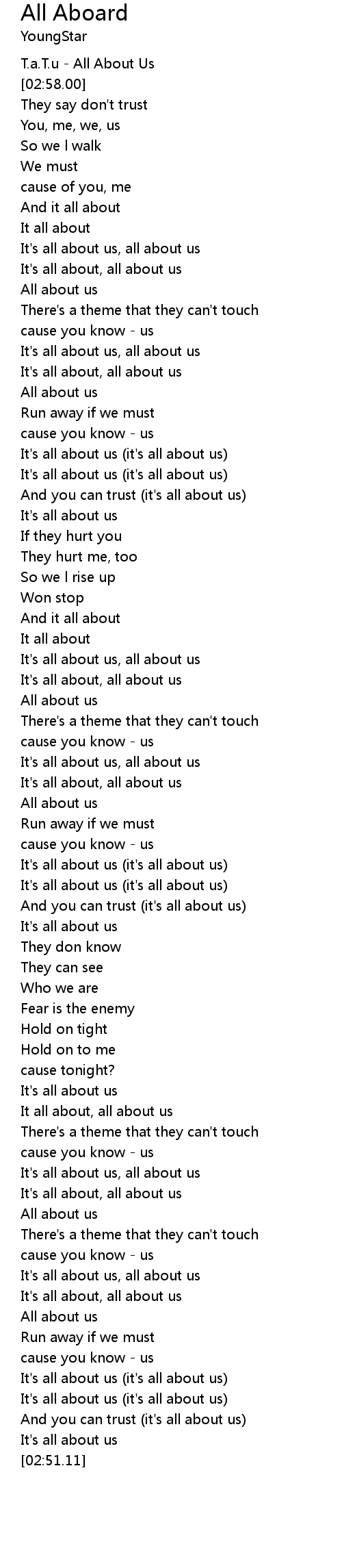 And you can trust (it's all about us) |