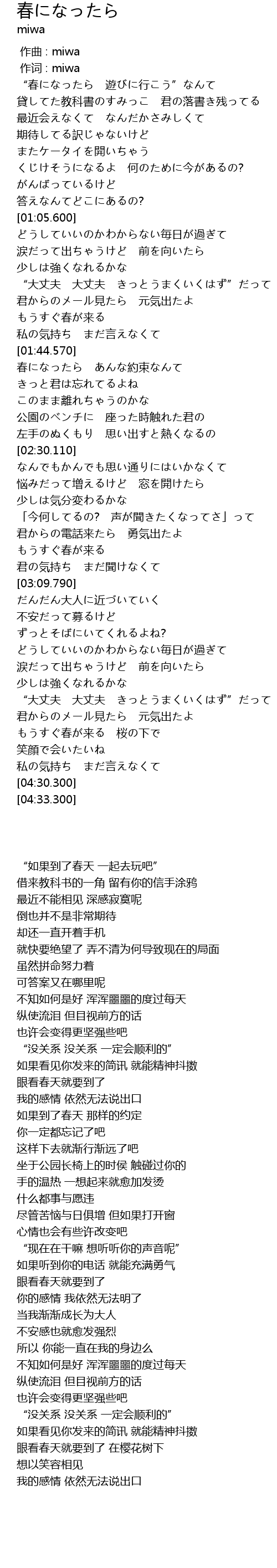| [01:57.690] | 春になったら あんな約束なんて |