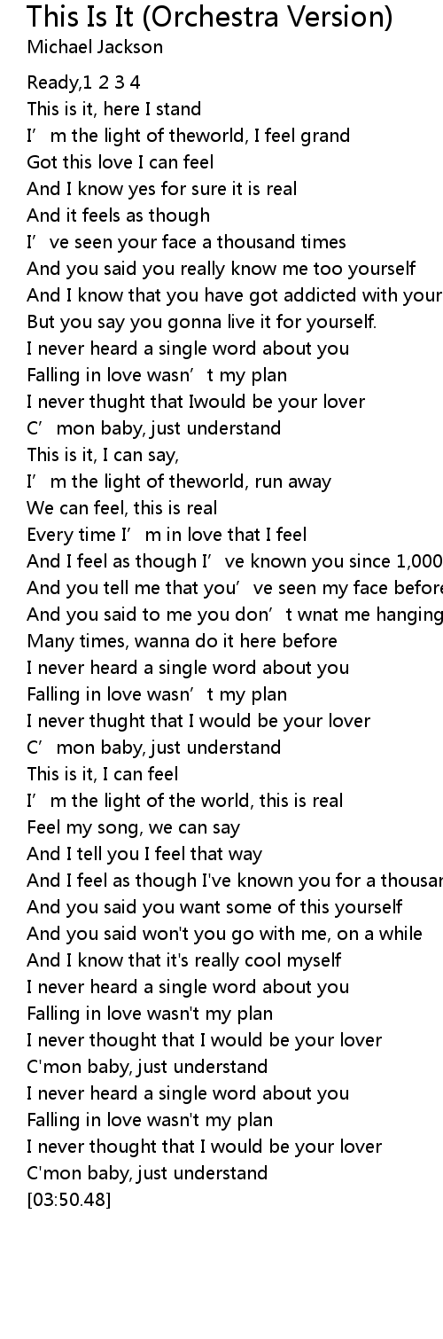 | [02:47.92] | And I feel as though I've known you for a thousand years |
