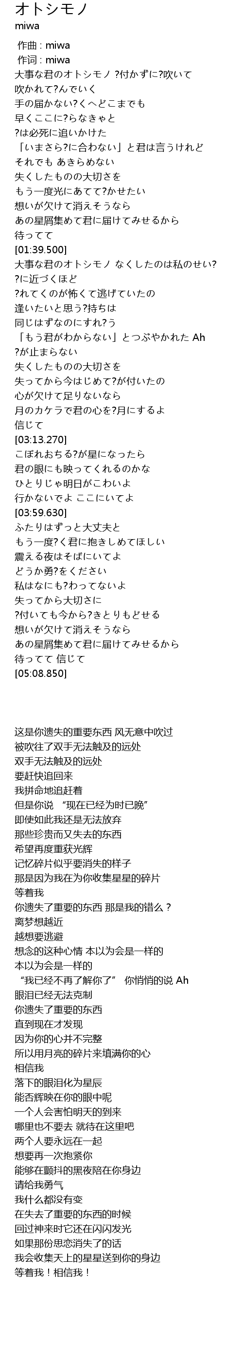 你遗失了重要的东西 那是我的错么? |