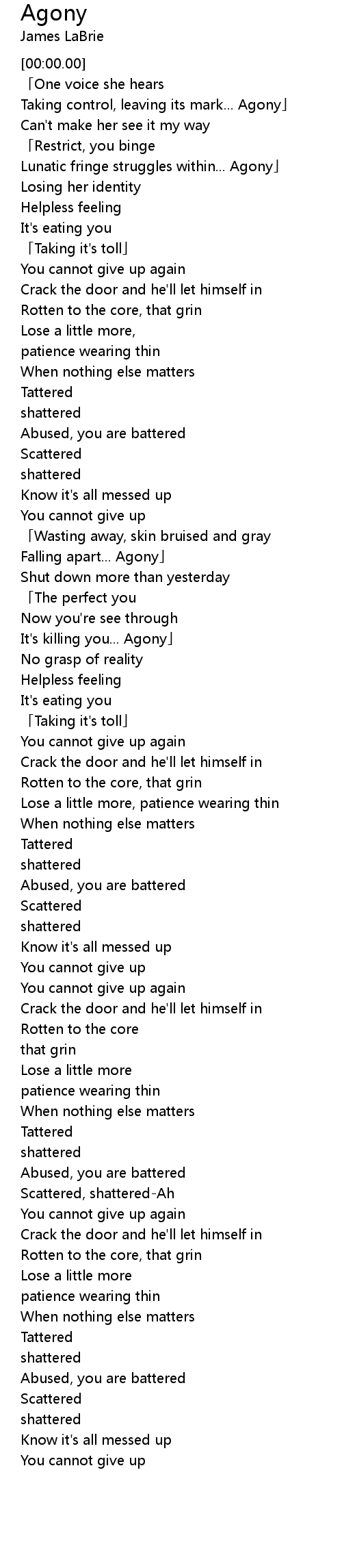 | [01:37.84] | It's killing you... Agony」 |