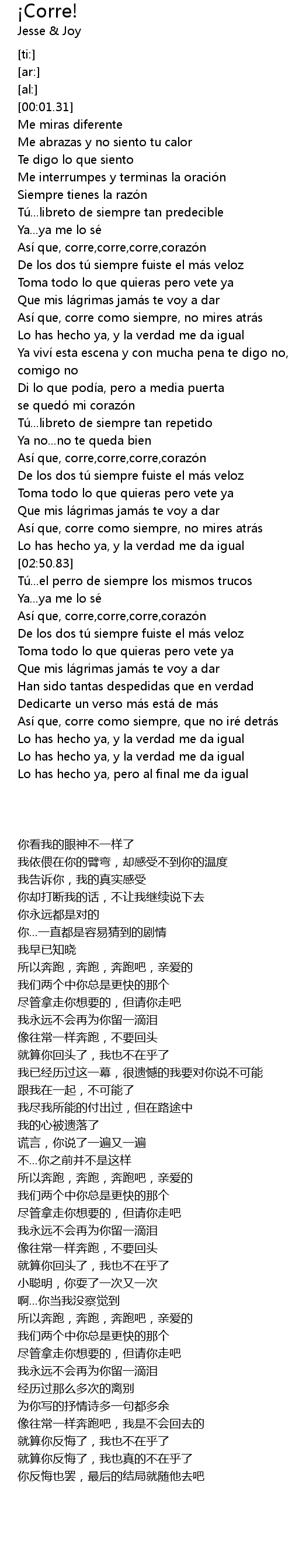| [00:49.80] | Así que, corre, corre, corre, corazó n |