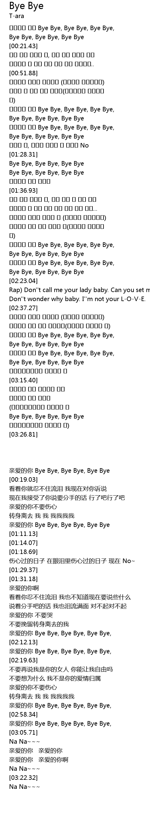 | [02:54.27] | 亲爱的你 Bye Bye, Bye Bye, Bye Bye, |