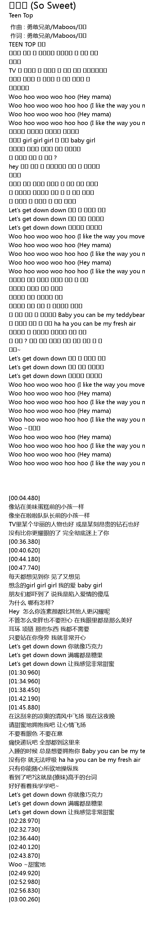 | [02:25.410] | Let's get down down 让我感觉非常甜蜜 |