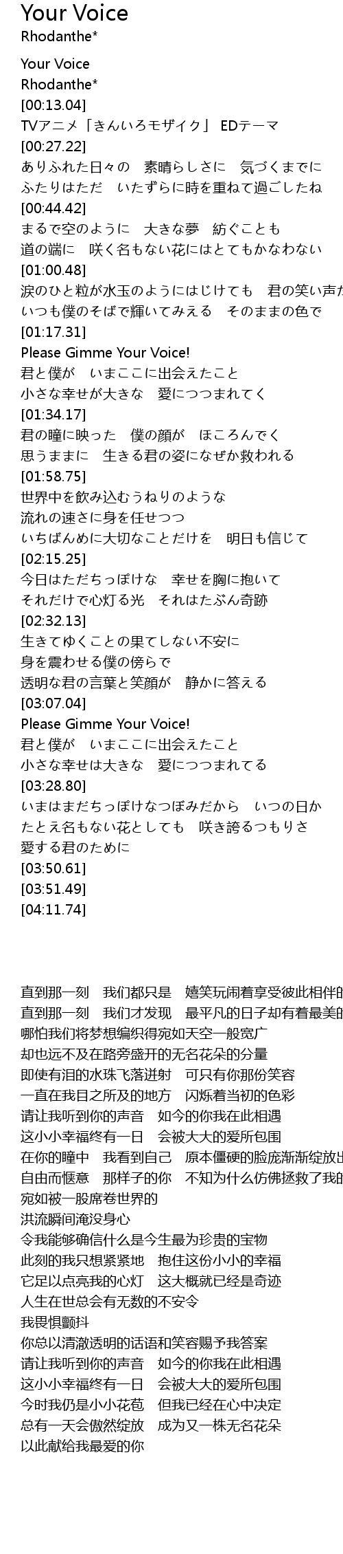 | [01:17.73] | Please Gimme Your Voice! |
