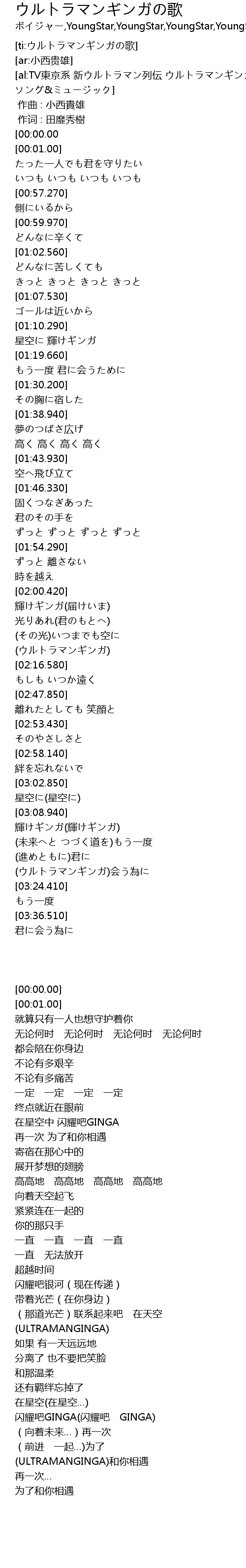 | [03:21.920] | (ULTRAMANGINGA)和你相遇 |