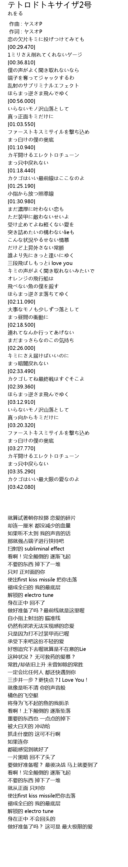 | [03:21.110] | ファーストキスミサイルを撃ち込め |