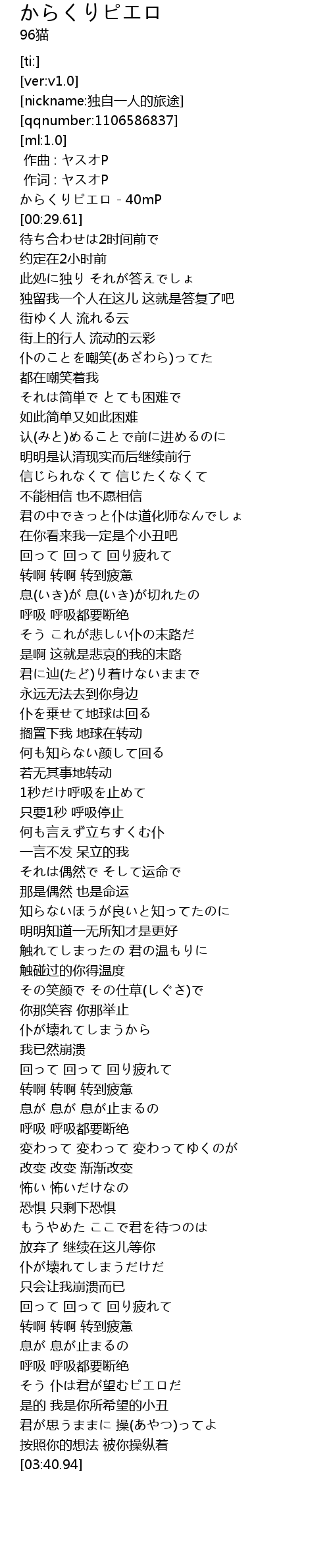 | [03:27.56] | そう 仆は君が望むピエロだ |