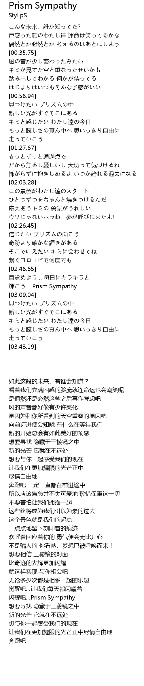 | [03:03.93] | 闪耀吧…Prism Sympathy |