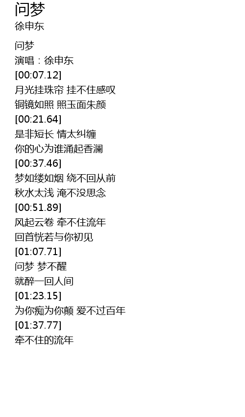| [01:08.84] | wèn mèng mèng bù xǐng |
