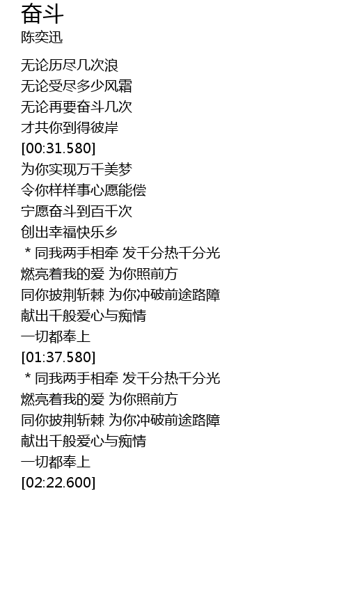 | [00:41.360] | 宁愿奋斗到百千次 |