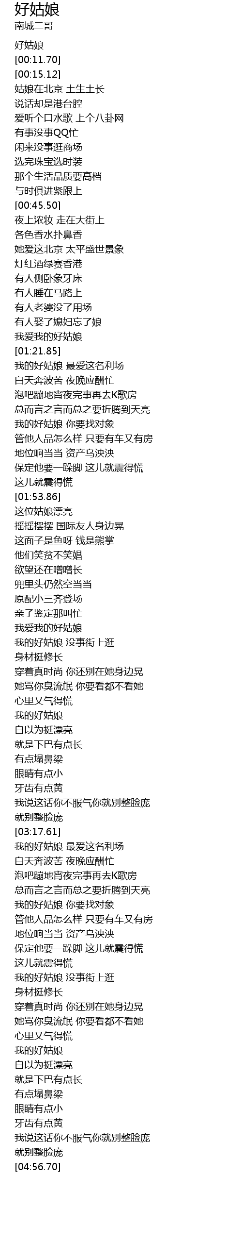 | [04:39.60] | wǒ de hǎo gū niáng |