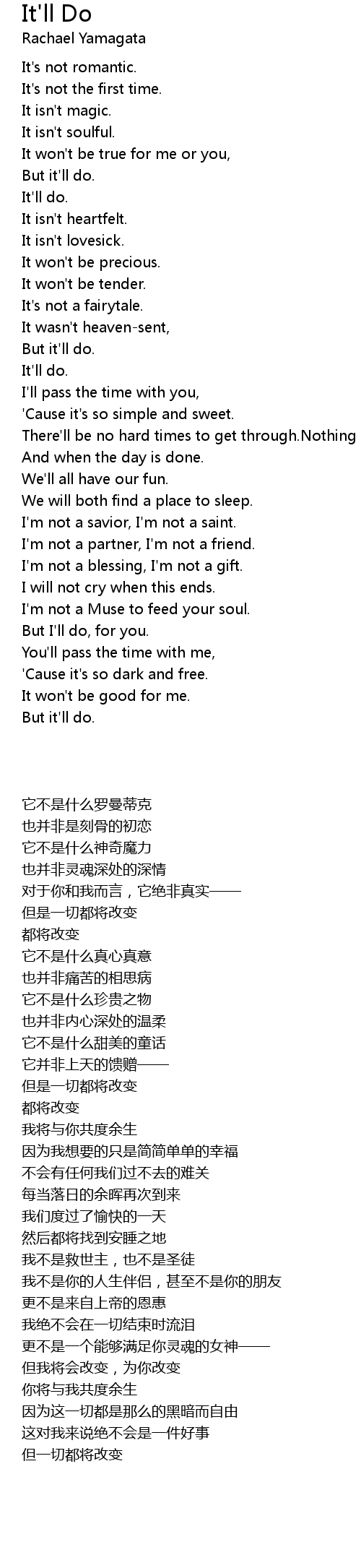 But I'll do, for you. |